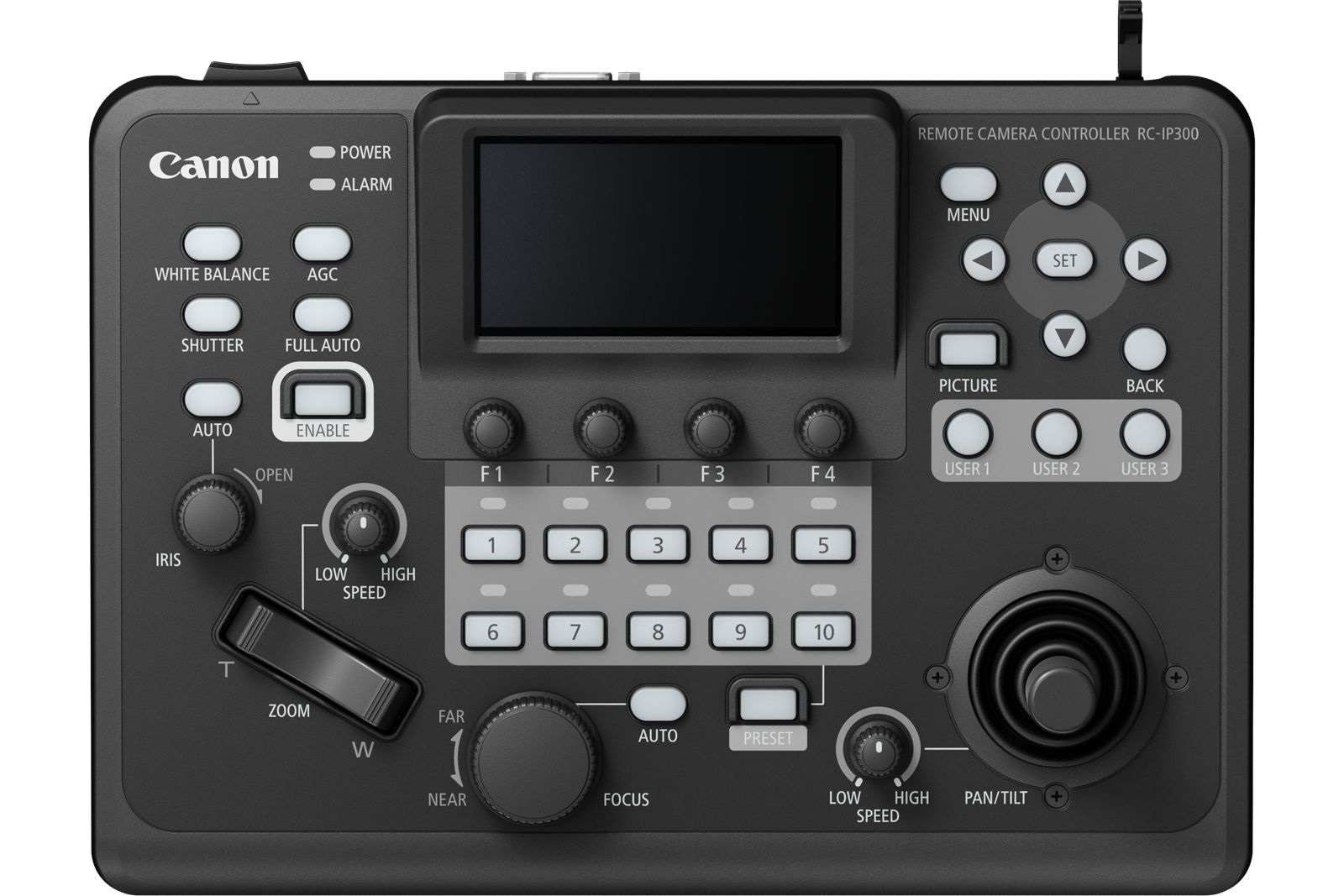 Canon представляет также RCIP300 — компактный, но мощный контроллер PTZ, созданный для современных многокамерных съемок. Разработанный, чтобы один оператор мог управлять сложными конфигурациями камер, контроллер управляет до 200 камерами, организует их в группы и сохраняет до 100 предустановок на каждую камеру для мгновенного вызова и повторяемого кадрирования.