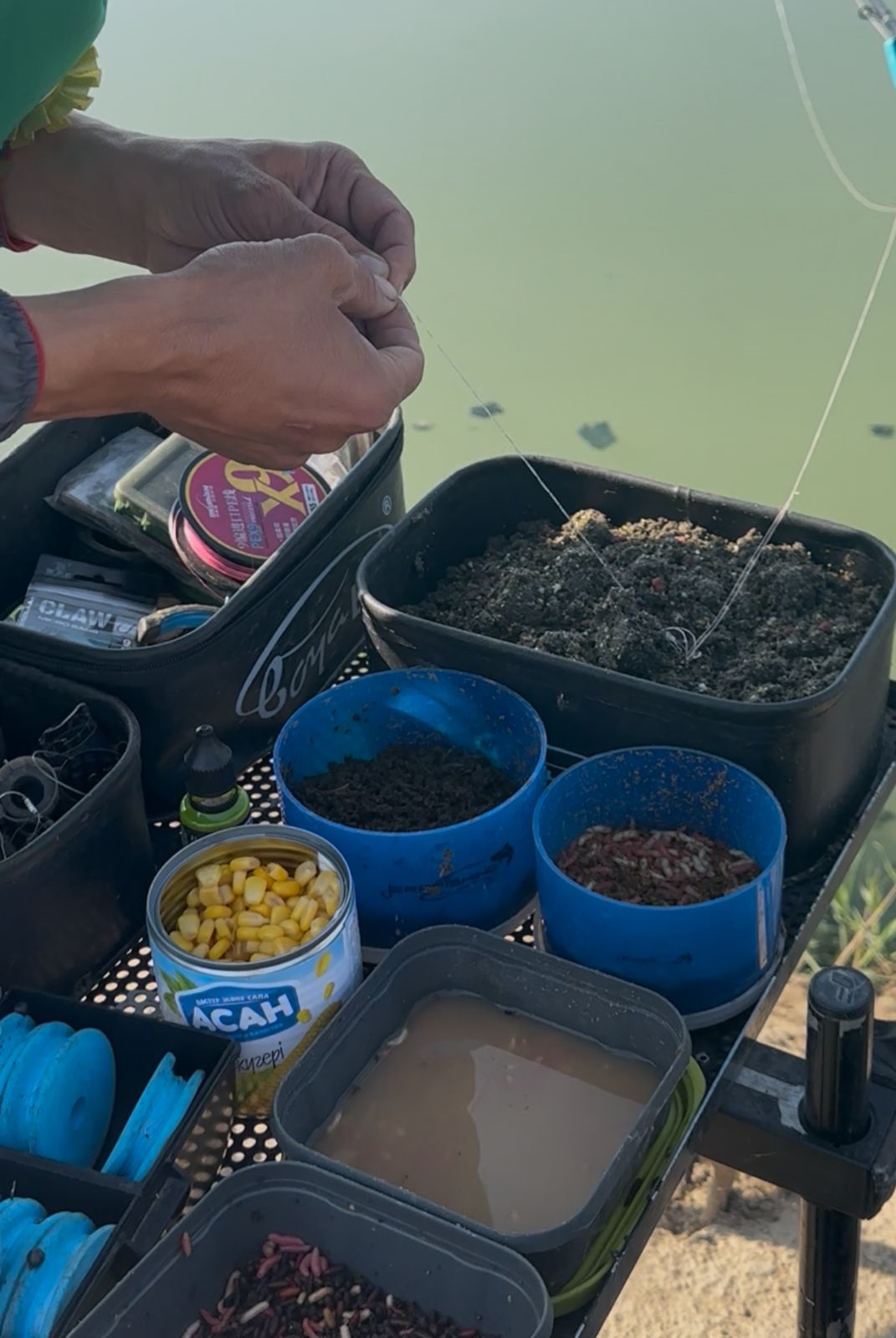 Очень хорошо подготовился к турниру и другой участник — Р. Сарманкулов, который отстаивает честь Кызылординской области. Руслан рассказал, что для него рыбалка — самое яркое воспоминание детства. С отцом он часто ходил ловить рыбу на Сырдарью. Сегодня он — заядлый рыболов, призер фестивалей в Кызылординской и Жамбылской областях. Его личный рекорд — белый амур весом 10 кг. На сегодняшнем турнире в качестве наживки использует кукурузу, живых и топленых опарышей.