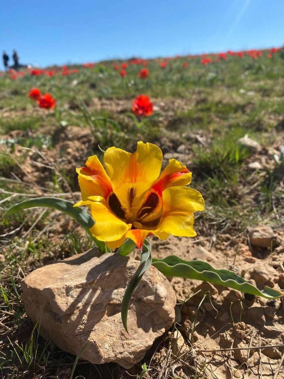 Участники мероприятия посетили горные склоны, где произрастают тюльпаны Грейга, и смогли увидеть их в естественной среде обитания.